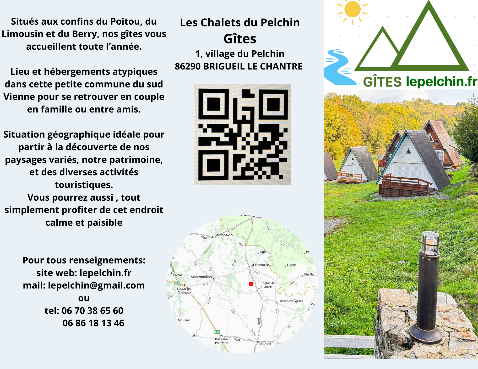 Bienvenue aux gîtes du Pelchin, autrefois Village Vacances. Un Hameau de gîtes situé à Brigueil le Chantre dans la Vienne, en France. Notre village offre une atmosphère chaleureuse et paisible, avec des hébergements atypiques, confortables et fonctionnels pour 4 à 6 personnes.