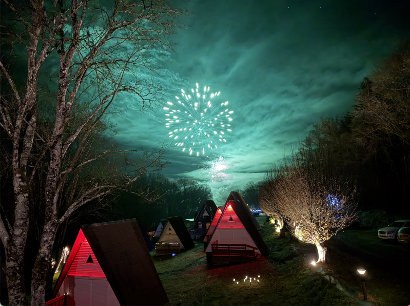Le Pelchin pour les festivités de Noël, avec en fond le feu d'artifice de la commune.